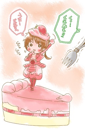 が、夜中なので、ケーキの絵を描いて空腹をごまかしときました。